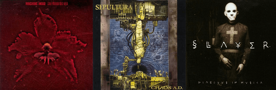 마지막으로 살펴볼 Diabolus in Musica는 미국의 4대 쓰래쉬 메탈 밴드 중 하나인 슬레이어의 여덟 번째 정규 음반으로 1998년 6월 9일 아메리칸 레코딩스를 통해 발매되었다. 라틴어로 '악마의 음악'을 의미하는 이 음반의 제목은 3온음을 가리키는데, 역사적으로 3온음은 노래를 부르기 매우 어려운 음정이었기에 악마의 음악으로 여겨졌고 중세와 르네상스 음악에서 기피되었다. Diabolus in Musica는 슬레이어의 이전 음반에서 벗어나 전통적인 스래시 메탈 사운드 외에도 뉴 메탈과 산업 음악의 요소를 통합했다. 이 음반은 이전에는 시도하지 않았던 드럼 루프, 전자 비트, 샘플 등을 특징으로 하는 일부 트랙과 함께 복잡하고 실험적인 곡 구조를 특징으로 한다. 해당 앨범은 발매 후 팬들과 음악 평론가들에게 혹평을 받았다. 뉴욕타임스와 블래버마우스 등 여러 언론사에서는 뉴 메탈 색채만이 유일한 특징을 가지고 있으며 개별 트랙들은 다 비슷하여 특색이 없다는 평가를 내렸었다. 슬레이어 기타리스트 케리 킹 또한 2022년 한 인터뷰에서 해당 작품은 그 당시 트렌드에 어울릴만한 앨범이었기에 본인에게 있어 신경 쓰지 않고 좋아하지 않는다고 말했다. 이와 같이 Diabolus in Musica는 비평가들뿐만 아니라 직접 제작한 멤버에게 긍정적인 평가를 받지 못했지만, 상업적으로 성공을 거두어 빌보드 200 차트에서 31위로 데뷔했고 미국에서 발매 첫 주에 46,000장 이상이 팔렸다. 이후 미국 음반 산업 협회(RIAA)로부터 미국에서 500,000장 이상의 판매로 골드 인증을 받았다. 첫 싱글인 'Stain of Mind'는 1999년 그래미상 최우수 메탈 퍼포먼스 부문 후보에 올랐다.